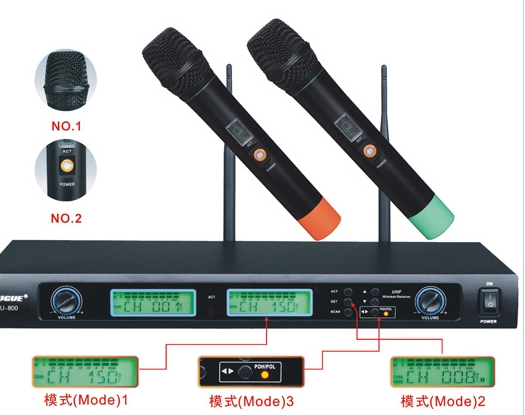 KTV包房使用模式,主要针对多房酒店或KTV倶乐部工程使用,此模式下话筒进入低功率发射状态,从而缩减使用距离,避免邻房相邻频点的干扰,使工程安装调试更加轻松。
